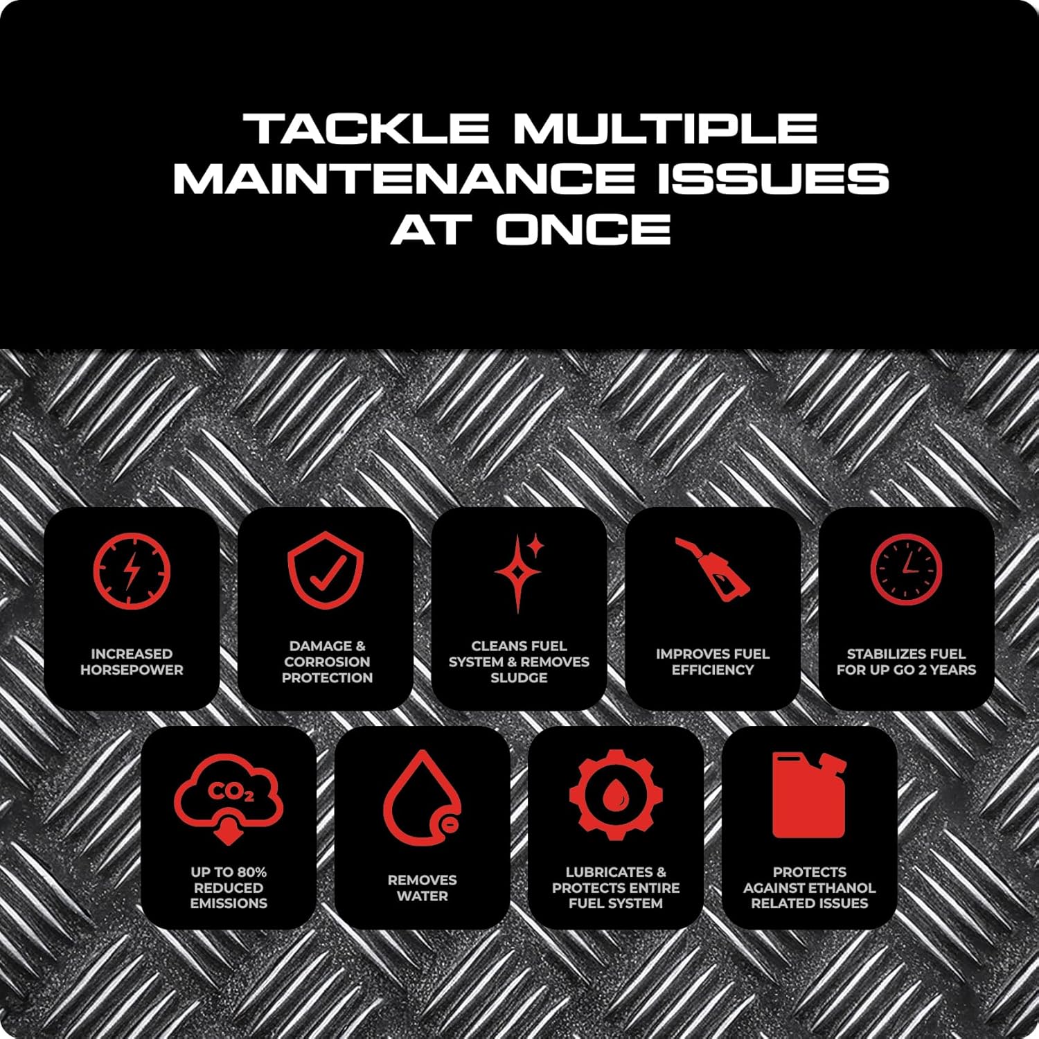 - Improves Fuel Economy by 7–10%: Patented combustion catalyst enables a more complete and efficient burn.
